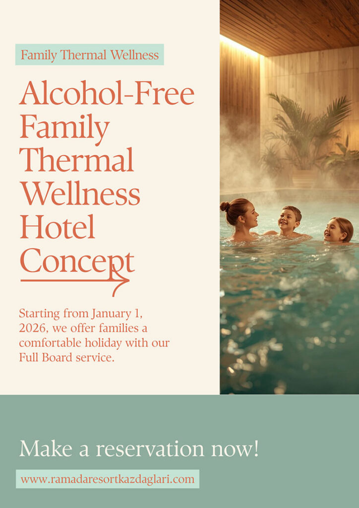 Our hotel has renewed its service approach to offer our guests a more peaceful, healthy holiday experience with a family atmosphere. Our facility continues to serve with the “Alcohol-Free Family Thermal Health Hotel” concept.